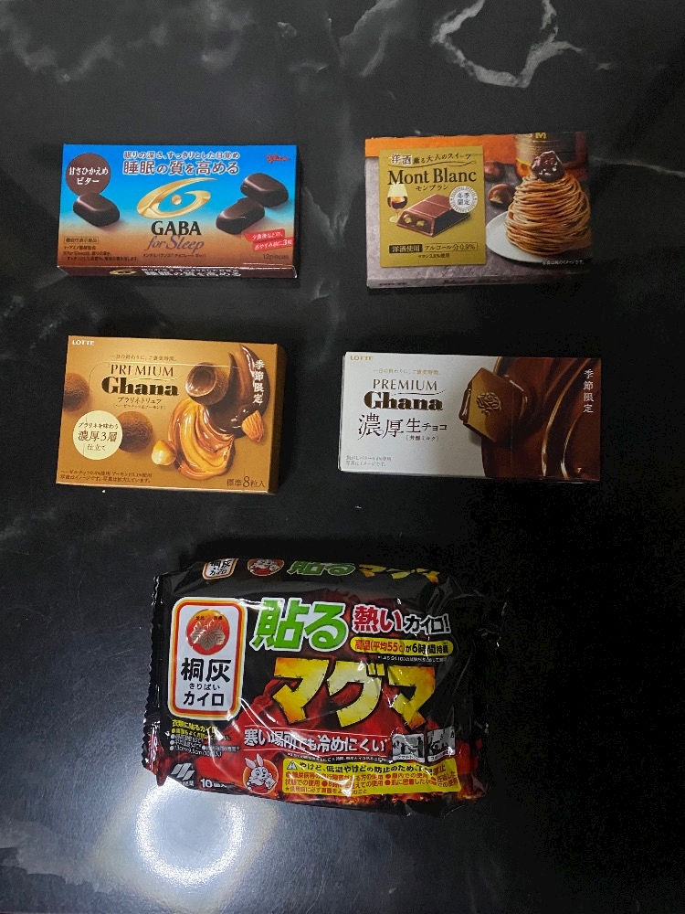 たくさんのお菓子とホッカイロです!