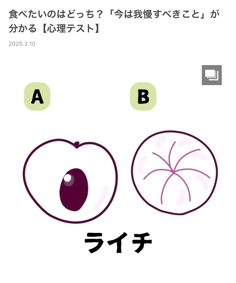 食べたいのがABのどっちかで今は我慢すべき事が分かる心理テストだそうです。