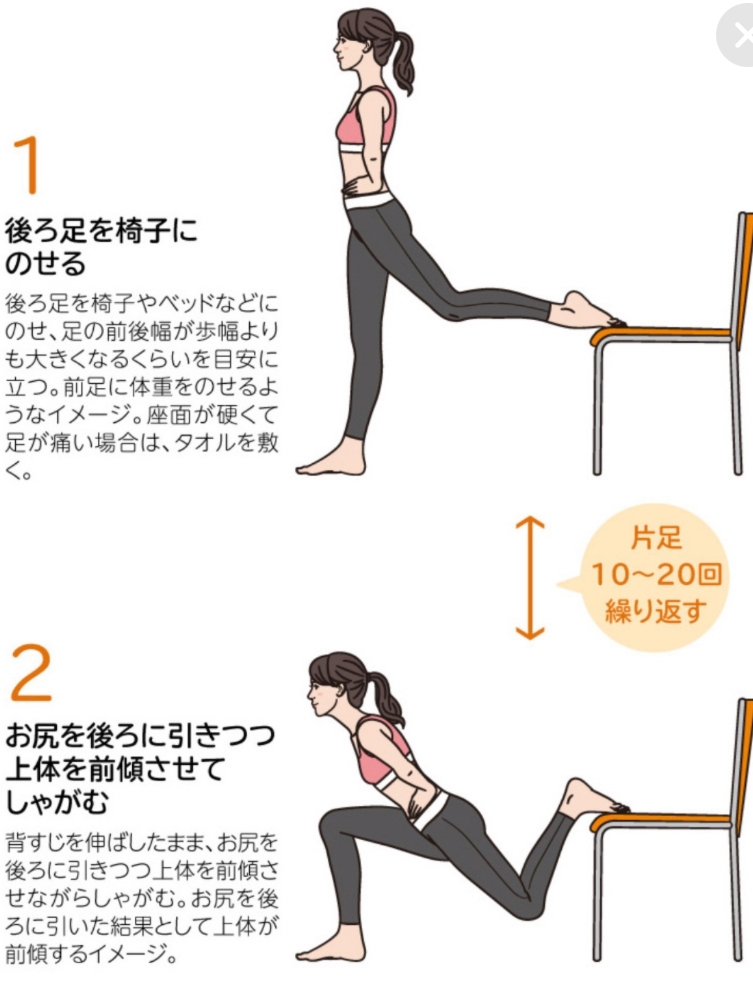 後ろ足を椅子とかに乗せて片足でスクワットする感じです!