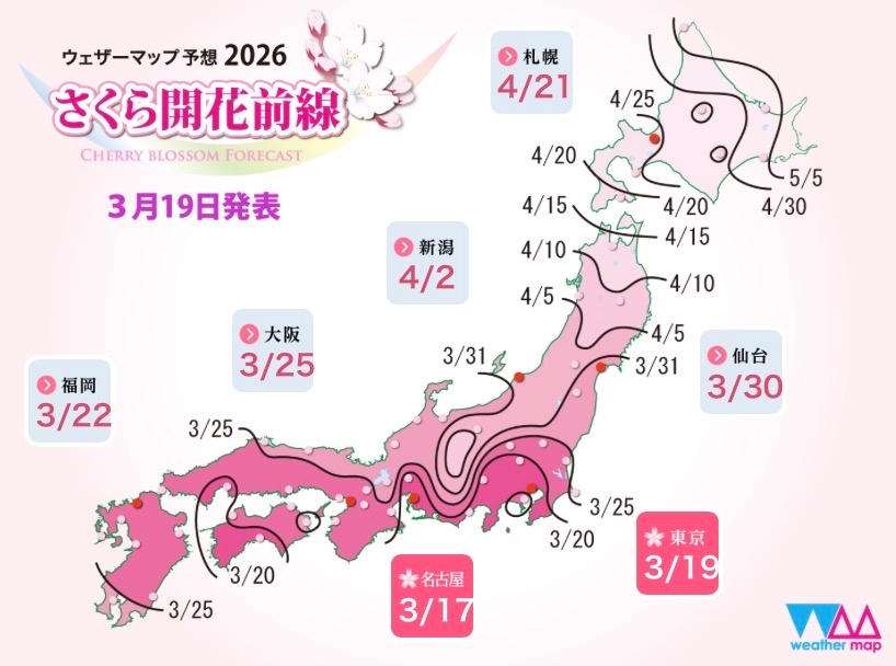 愛知県民なので1番気になるのは名古屋ですが、もう咲き始めてるのか!