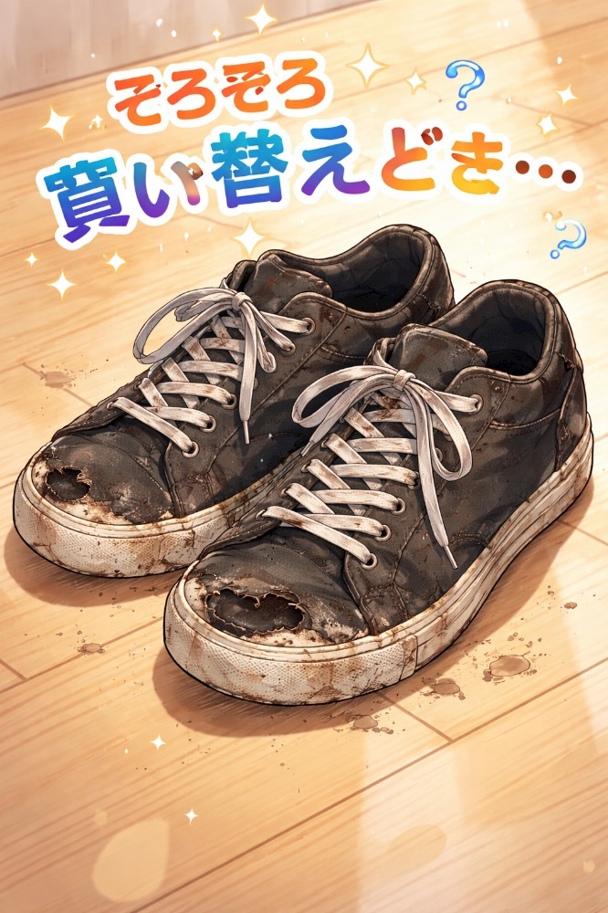スニーカーがボロボロになってきた事をブログに書いたから、チャッピー先生に買い替えどきのスニーカーのイラストを作ってもらったら…