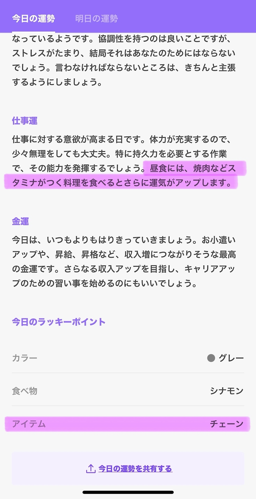 私がちょっと信じてる今日の運勢?で