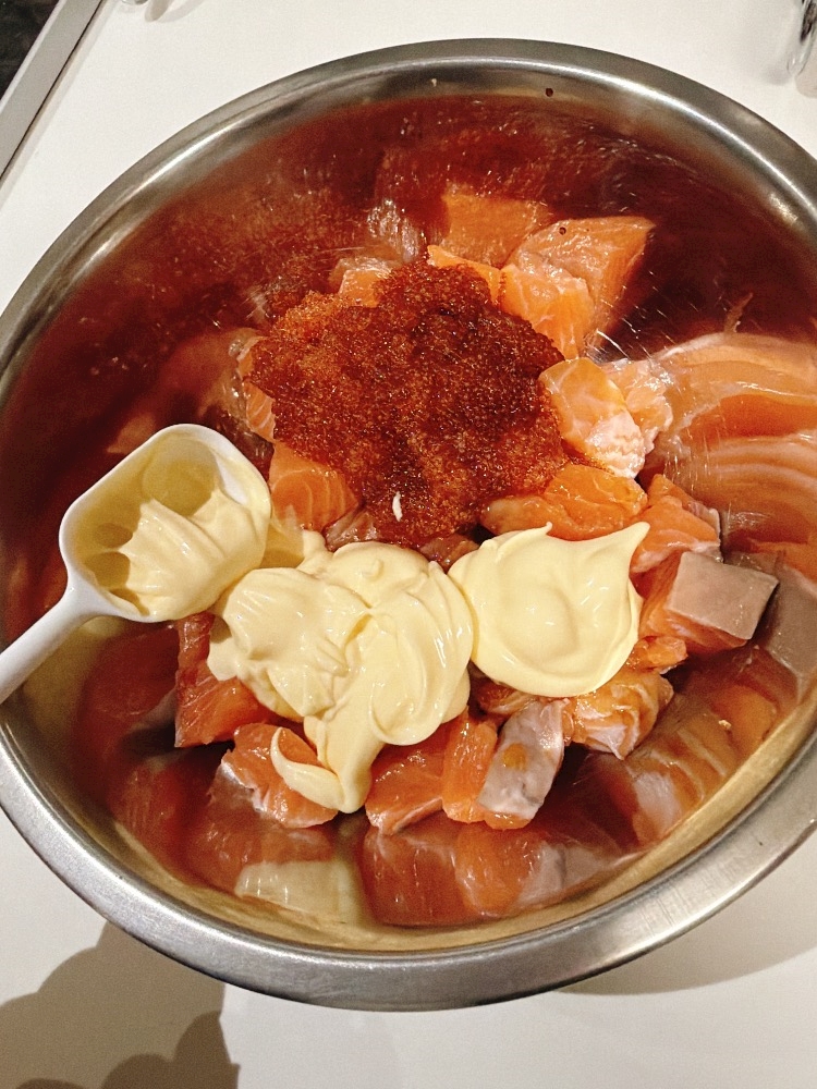 プチプチ食感の醤油マヨネーズサーモン