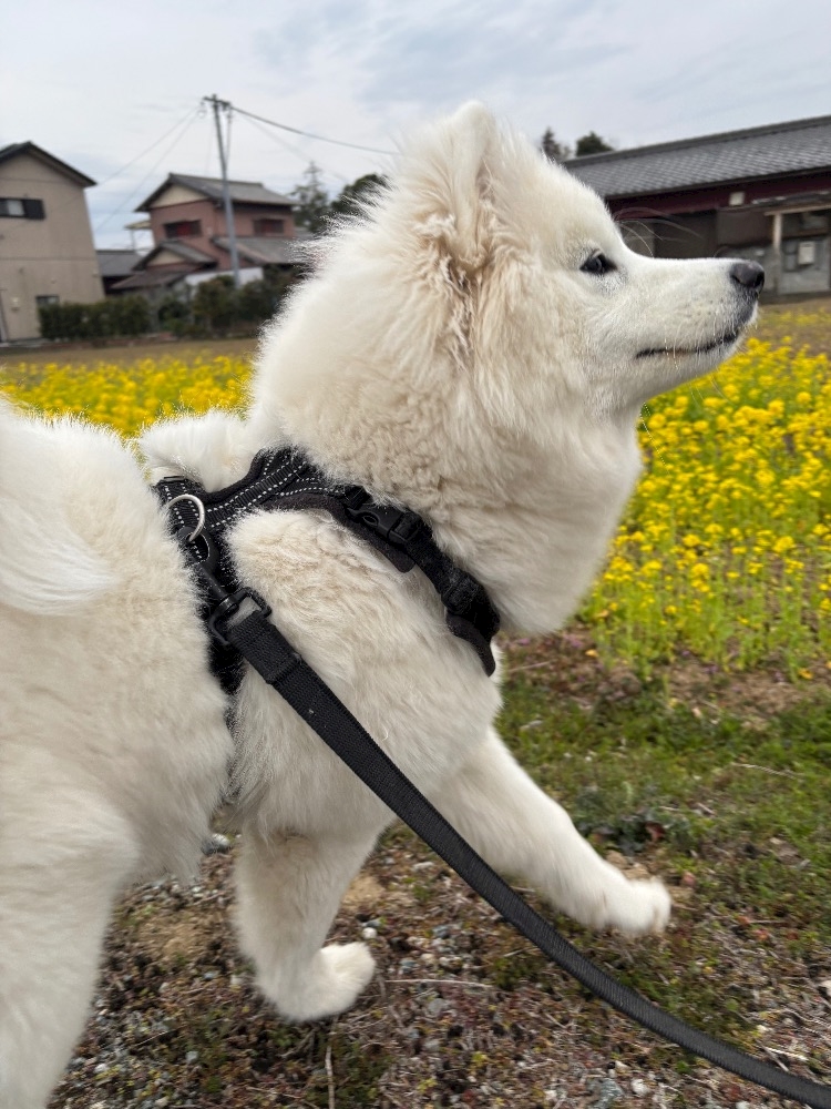 菜の花とサモエドちゃん