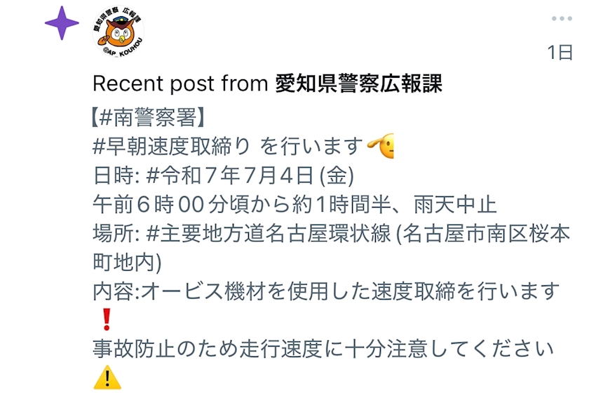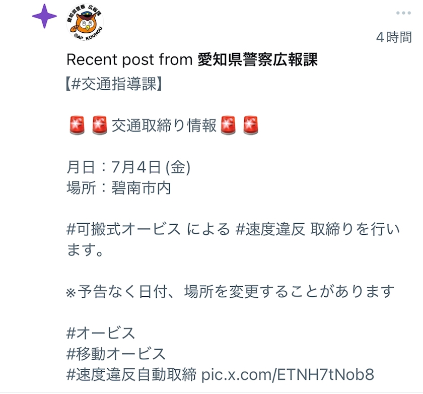 みしゅらん近くの取締り情報〜🚓