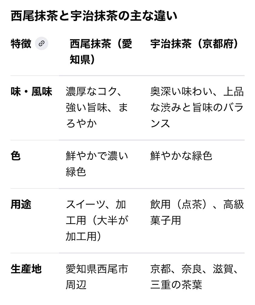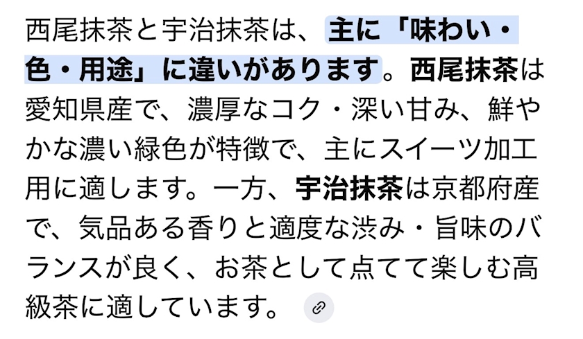 宇治抹茶と西尾抹茶が
