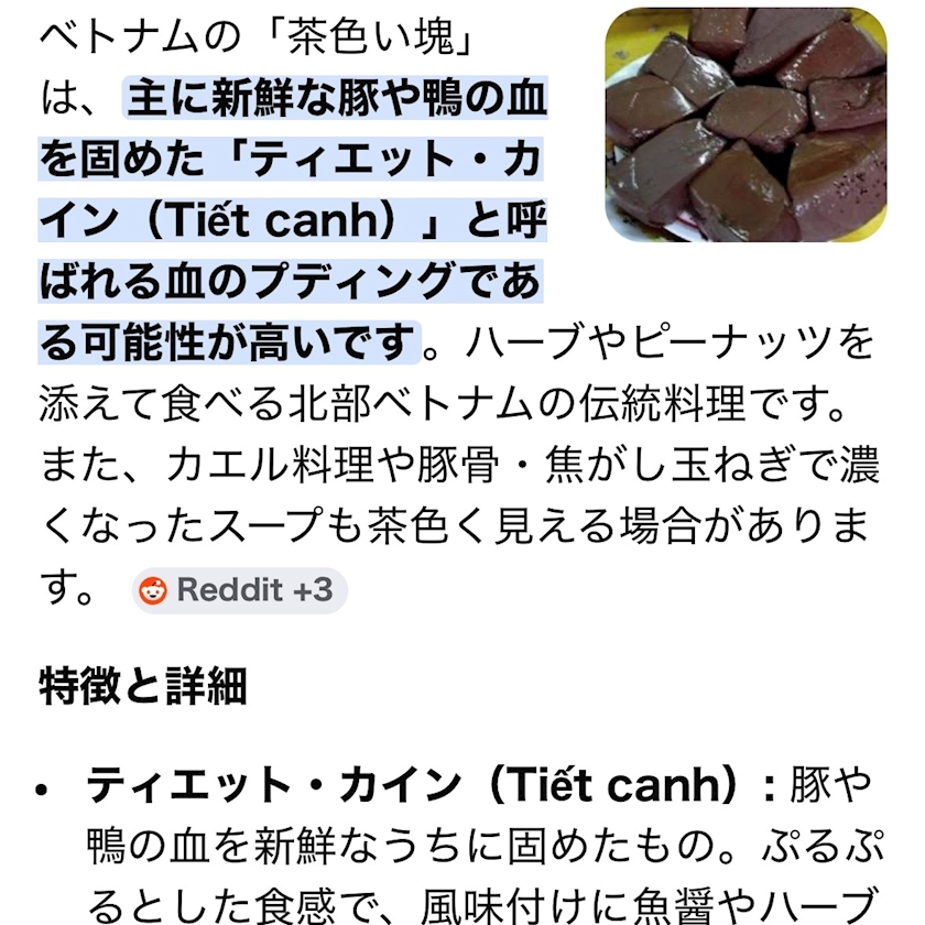 食べ終わってからベトナム 茶色のかたまりって検索🔍かけたら