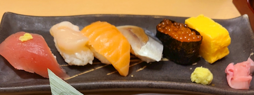 サーモン、貝、マグロ、エンガワ、