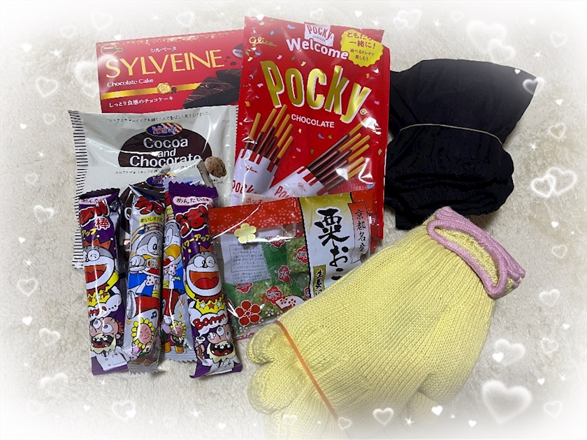 お菓子の差し入れと、昼職で使える手袋ちゃんたち😊