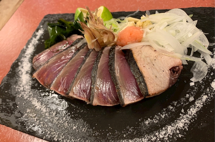 カツオのたたきにマグロの刺身