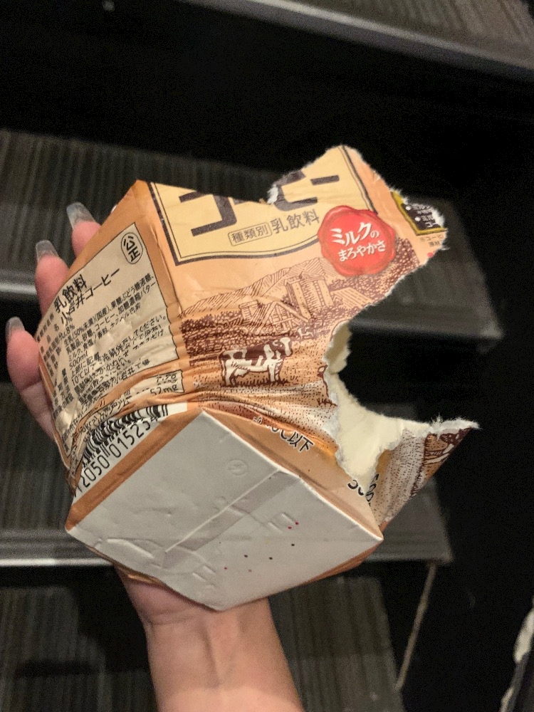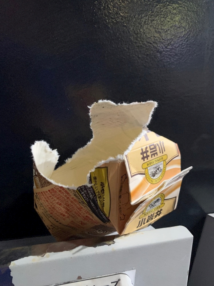 飲み終わったパックの口を畳んで床に置いたら