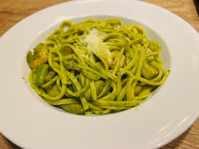 ランチのパスタも緑だったんだ