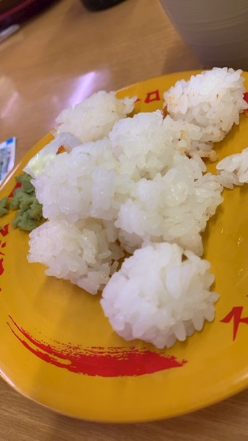 ゆうかちゃんとお仕事の話しながらお寿司行ってきたけど、米いらなすぎてシャリハーフにして食べてたらこうなった(。・о・。)