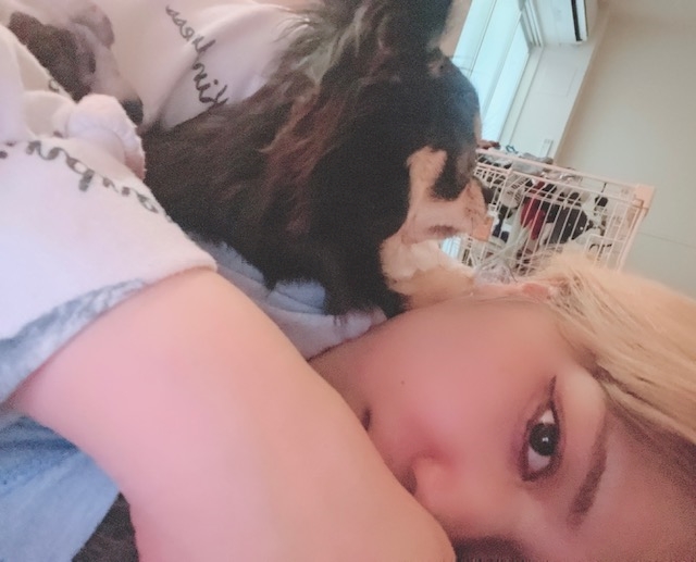 飼い主は泥酔で化粧も落とさず寝てるのにその上に寝られてる。