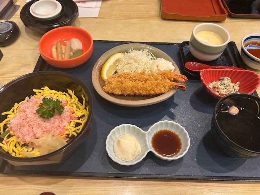 カニちらしと海老フライ〜♡