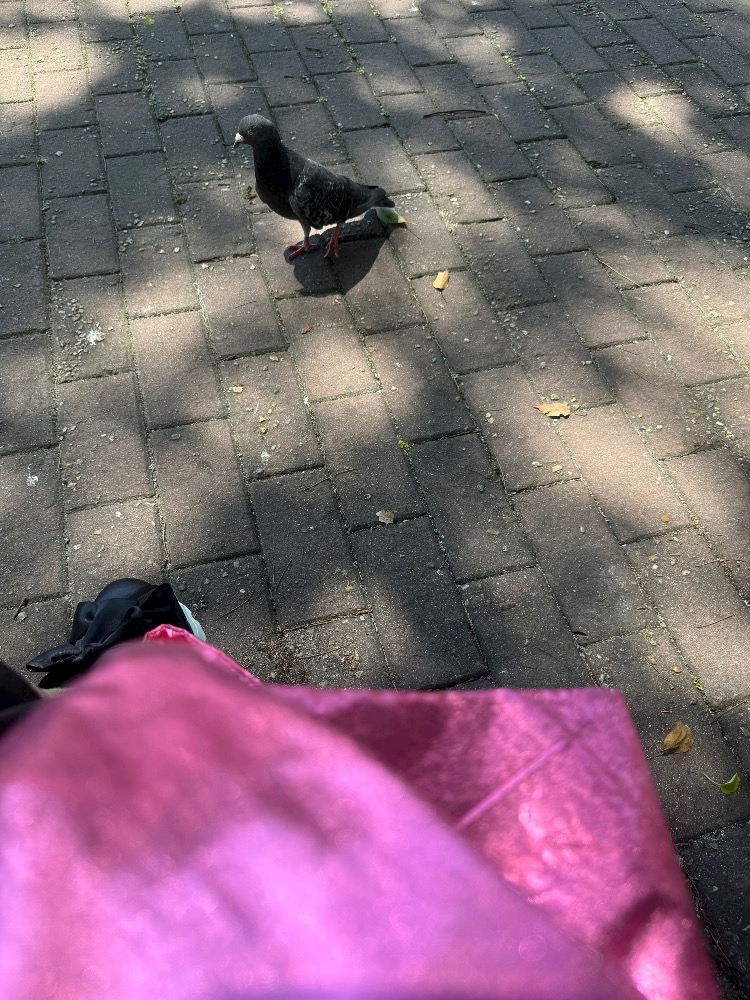ベンチ座って鞄がさごそしてたら寄ってきた鳩🐦