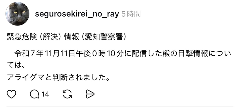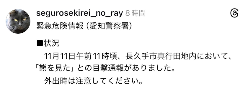 スレッズでこれ見て、長久手も熊おるん…こわ………