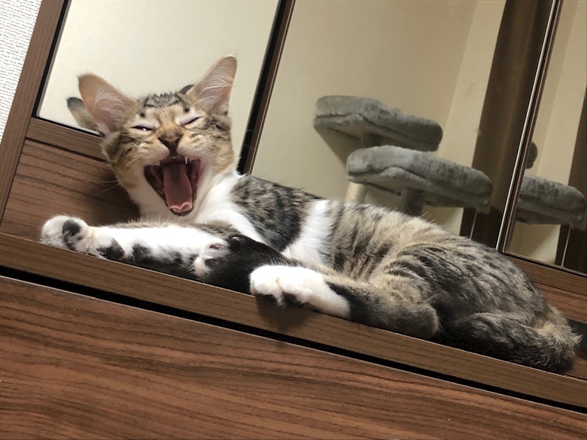 🐈🐾←ムー君 凄いあくび🤣爆