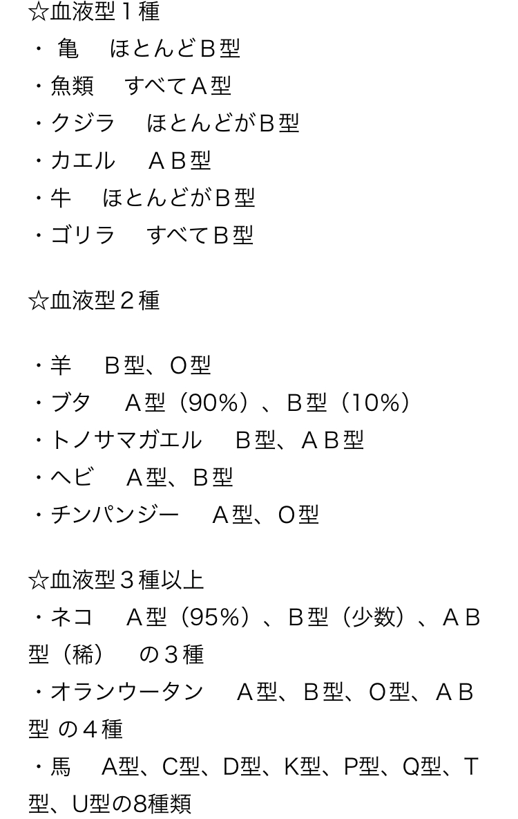 A.B.O.AB型→動物