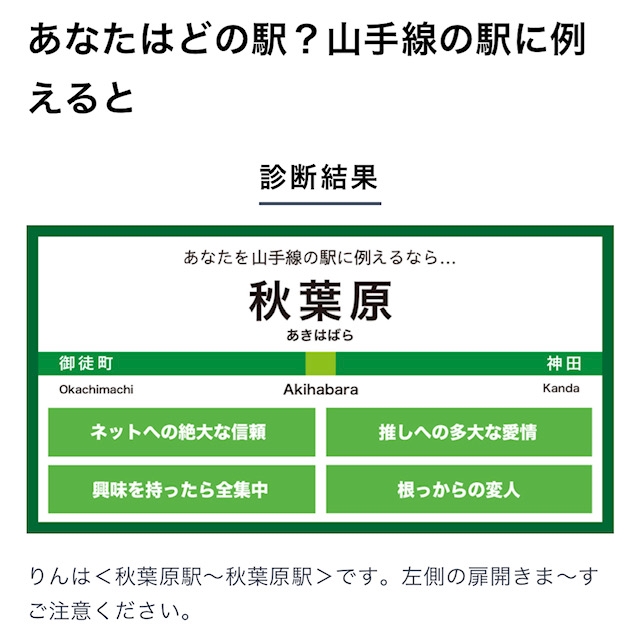山手線診断ていうやつ