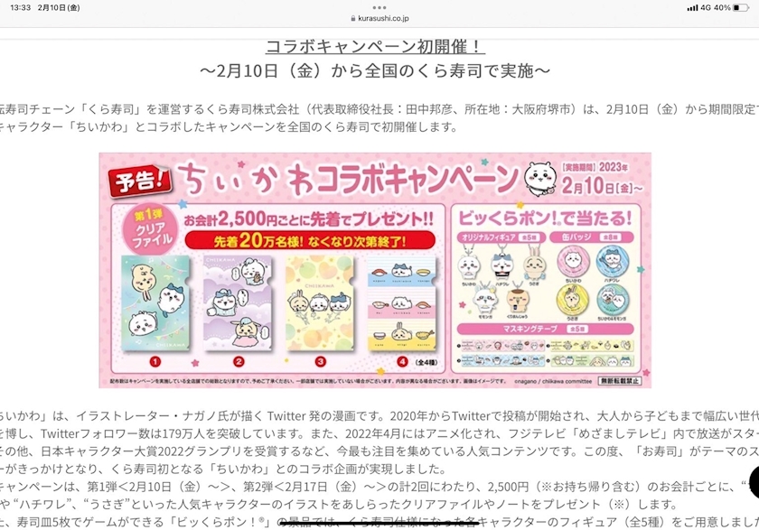 くら寿司にちいかわ探しに行くの