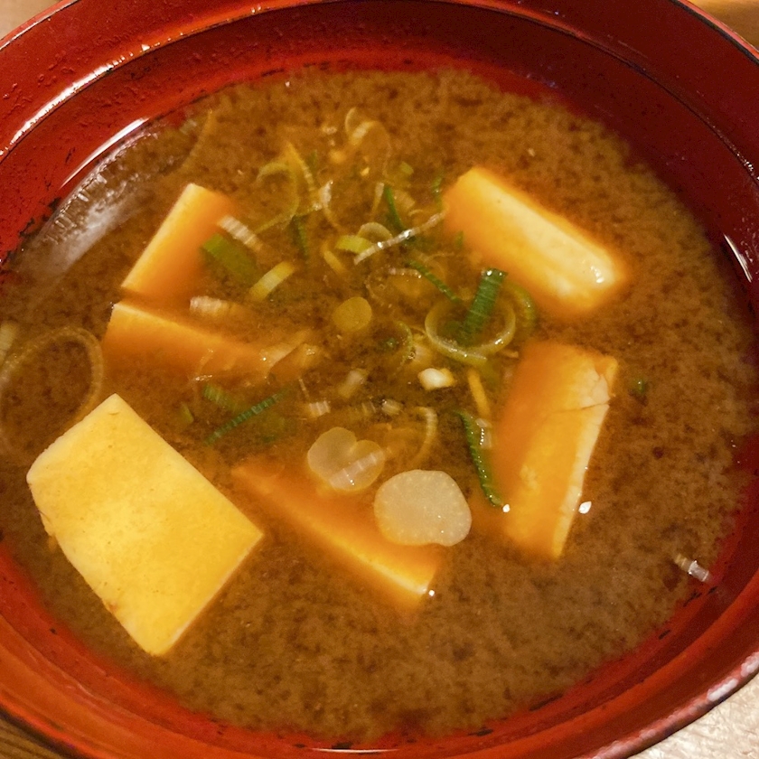 暖かい味噌汁のんで