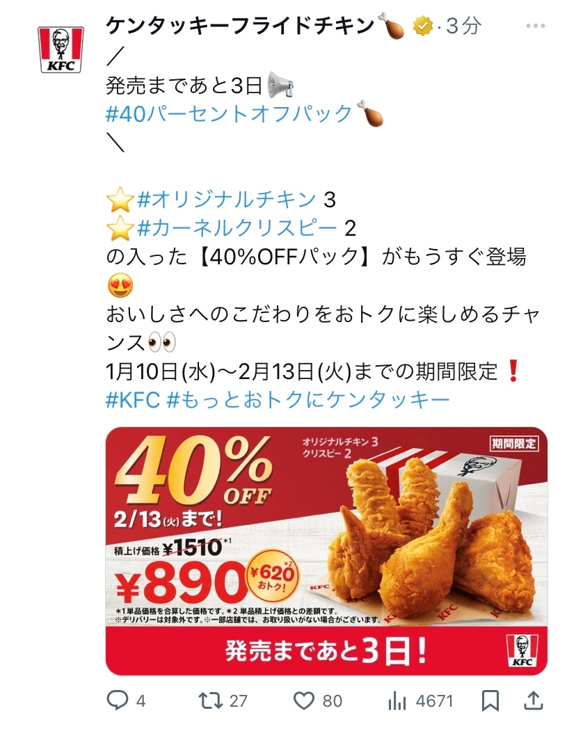 ケンタッキーがやすいって噂聞いた
