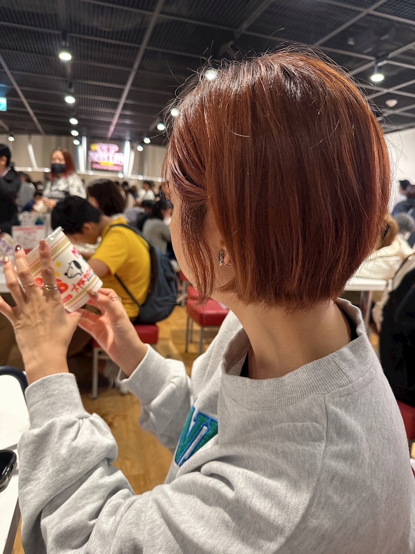 カップヌードル作成に真剣な私👩
