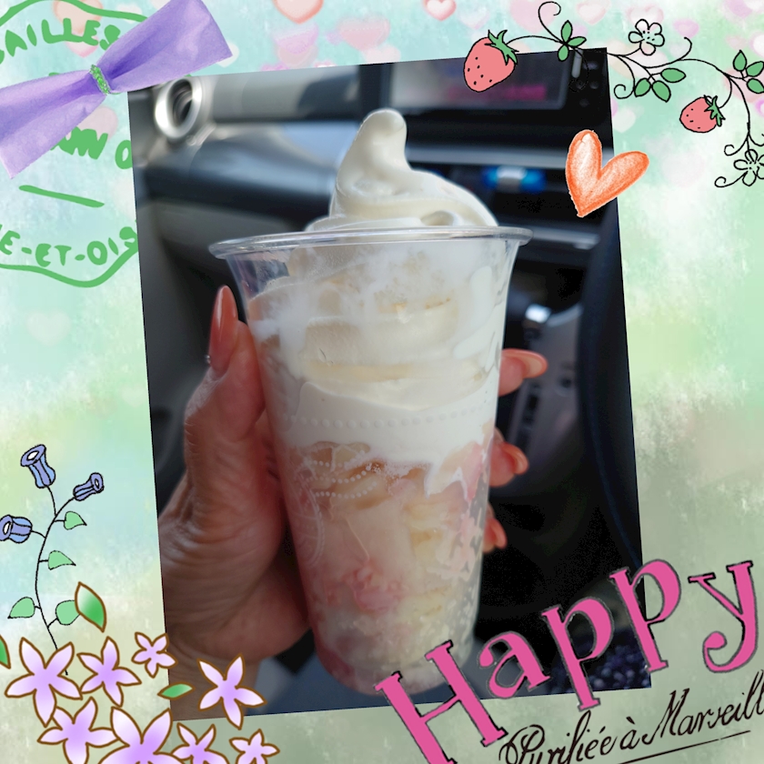 暑いから溶ける前に車の中で(๑⃙⃘・н・๑⃙⃘)パクッ
