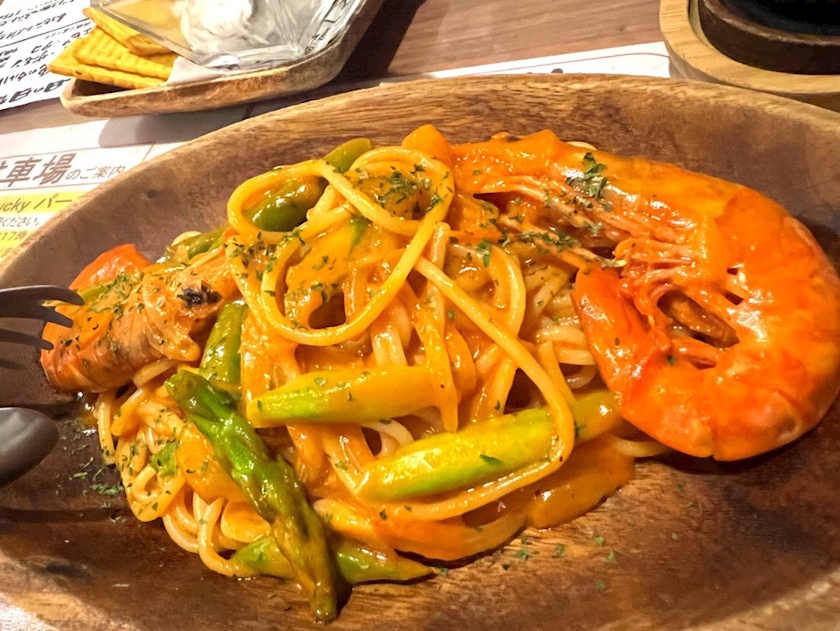 赤エビとアスパラのトマトクリーム🦐🍅
