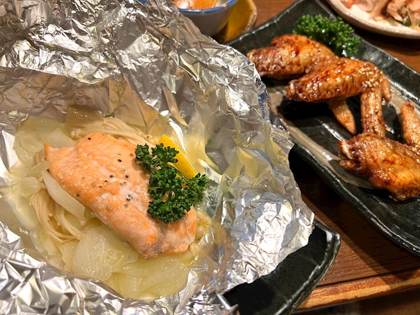 サーモンのバター焼き🐟手羽先🐦