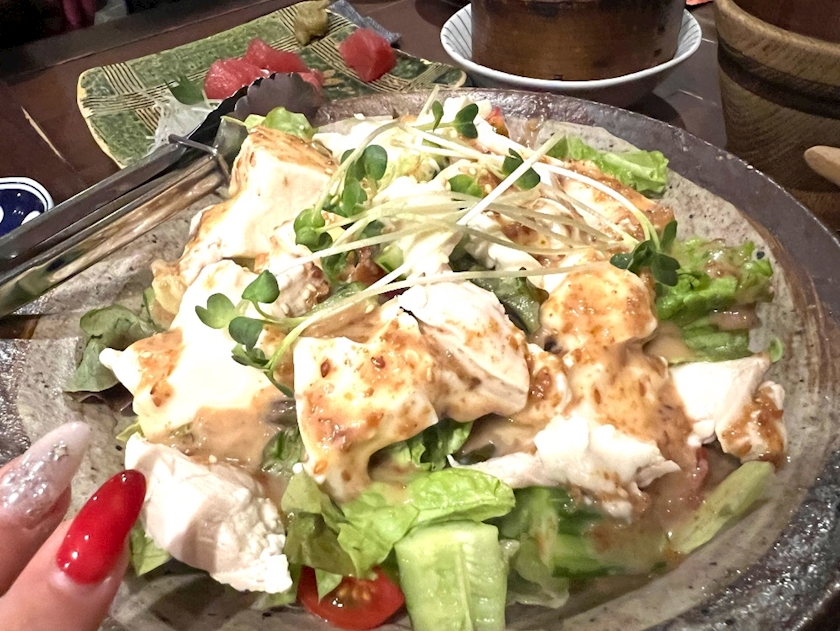 自家製豆腐と蒸し鶏のごまサラダ🐔