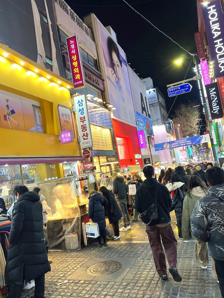 - 屋台 in 明洞🇰🇷🌶️🍖チャプチェやクロワッサンたい焼き(ºωº э)З