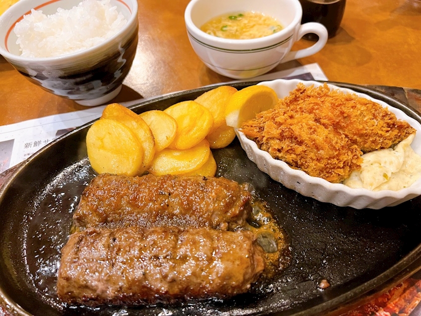 ハンバーグにカキフライ🦪