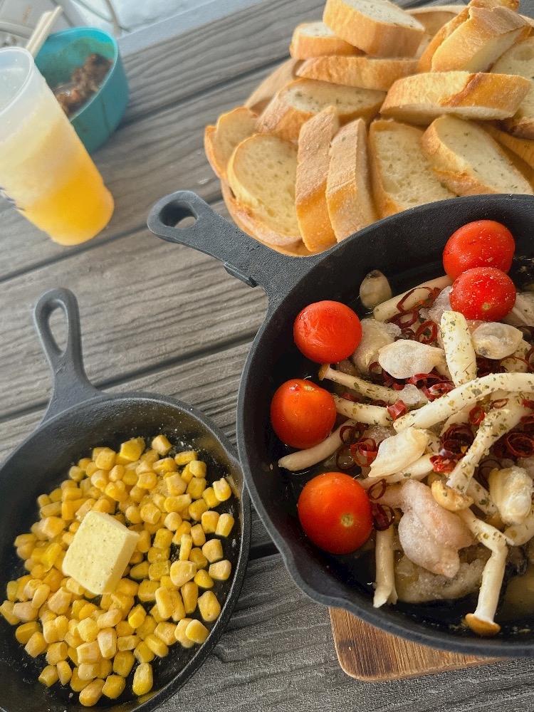 アヒージョとコーンバター🌽