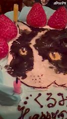 最初にびっくりしたのはメロンの似顔絵の水色の可愛いケーキ🎂