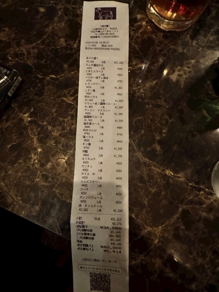 レシート🧾スーパー並に長くて笑