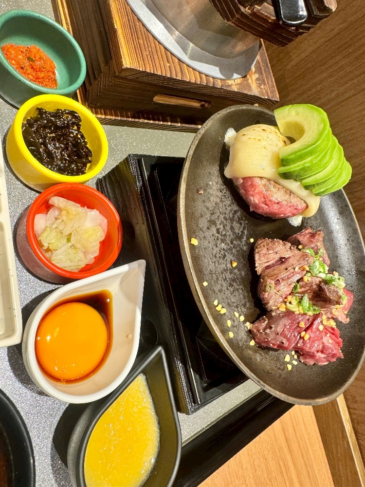 ハラミとハンバーグにチーズとアボカドトッピング🥑