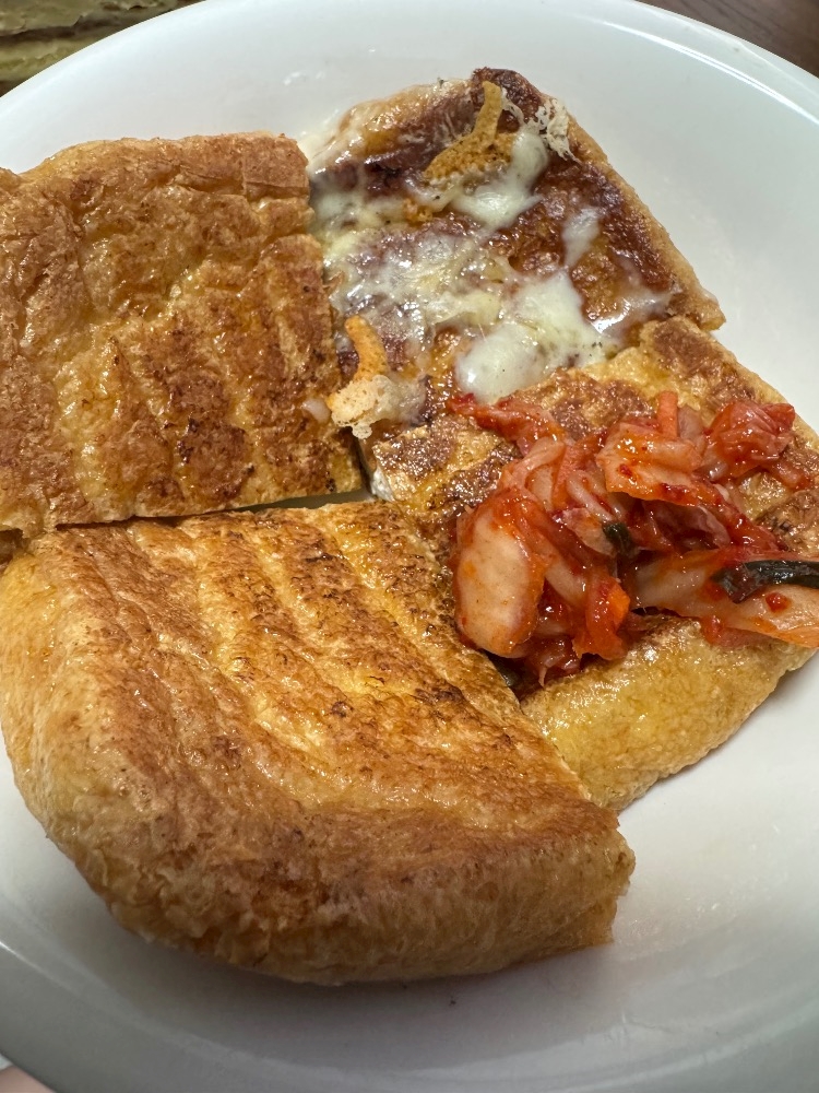 1個はチーズ1個はキムチ残りの2個は醤油とポン酢つけて食べたよん