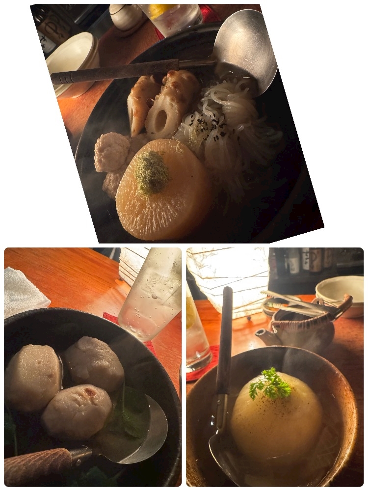 暗くてよく見えないけど豚肉のおでんめちゃくちゃ美味しかった〜