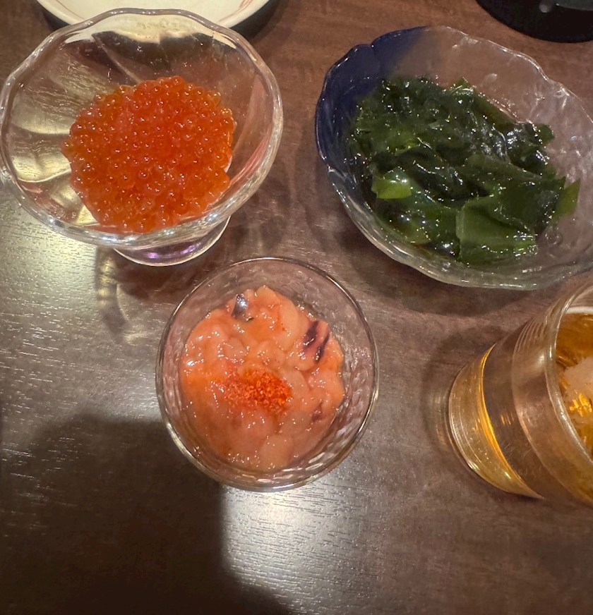 いくらと塩辛とわかめ