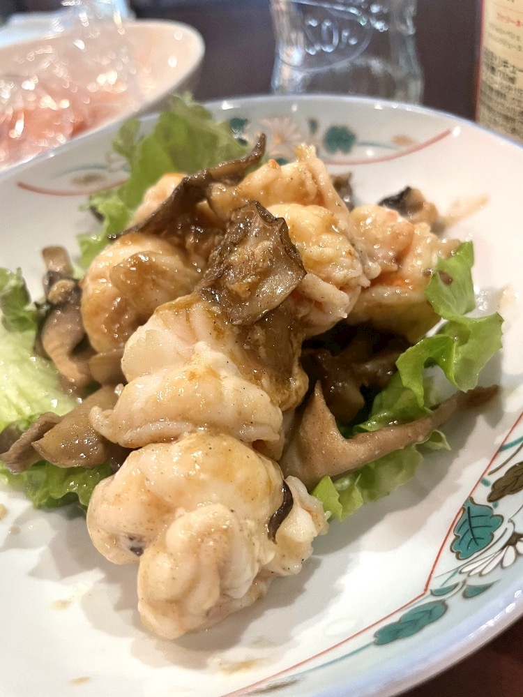 舞茸とおっきい海老でうんま😋