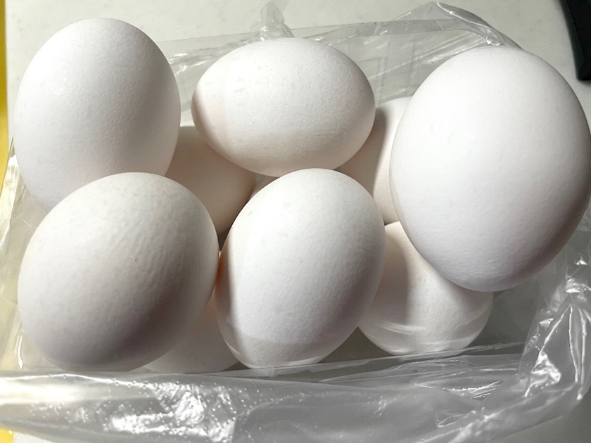 右の卵が