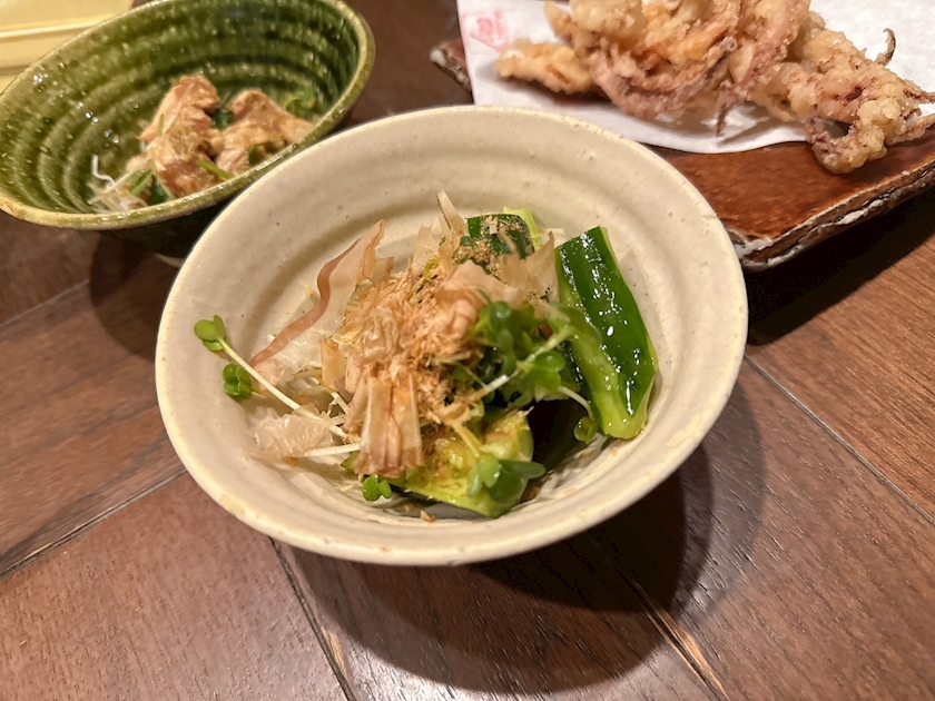 梅きゅう🥒といかげそ唐揚げ🦑
