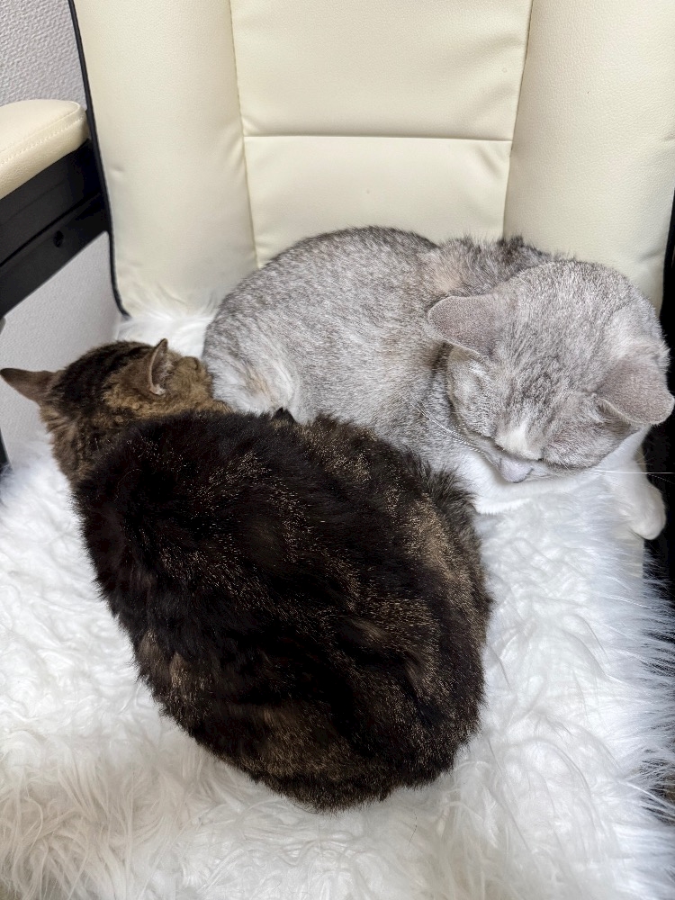 珍しく2匹一緒にくっついて寝てた🥰
