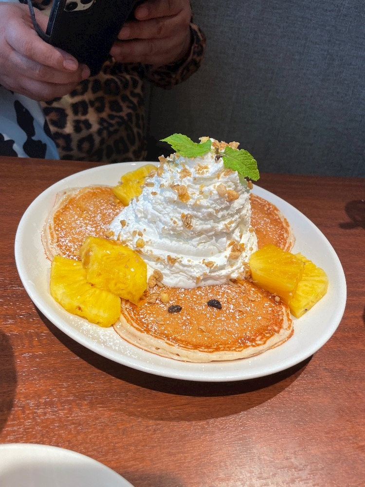 ホイップの沢山乗ったパンケーキ食べたよ😂🩷