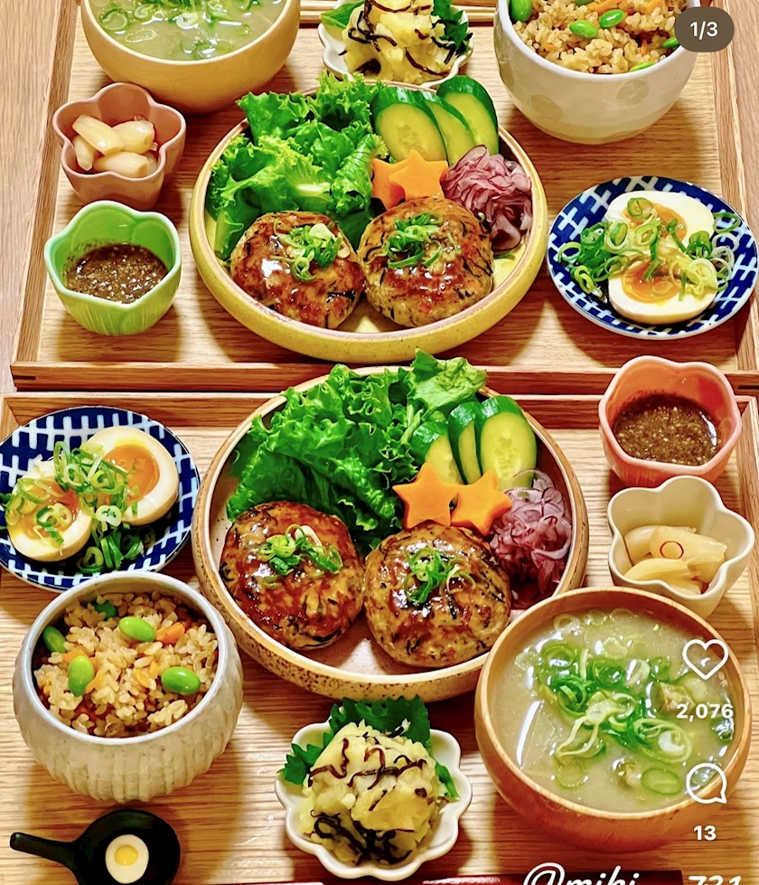 お休みの日に、自分で作ったごはんを並べて
