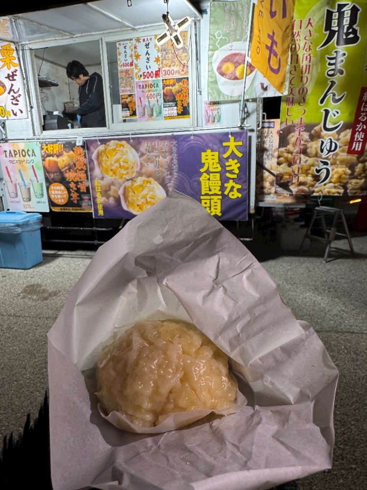 屋台にめっちゃ大きい鬼まんじゅうあったから