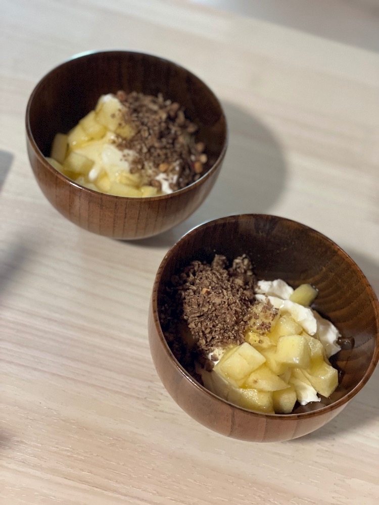 朝はヨーグルトとはちみつにりんごとグラノーラ入れて食べたよ^^