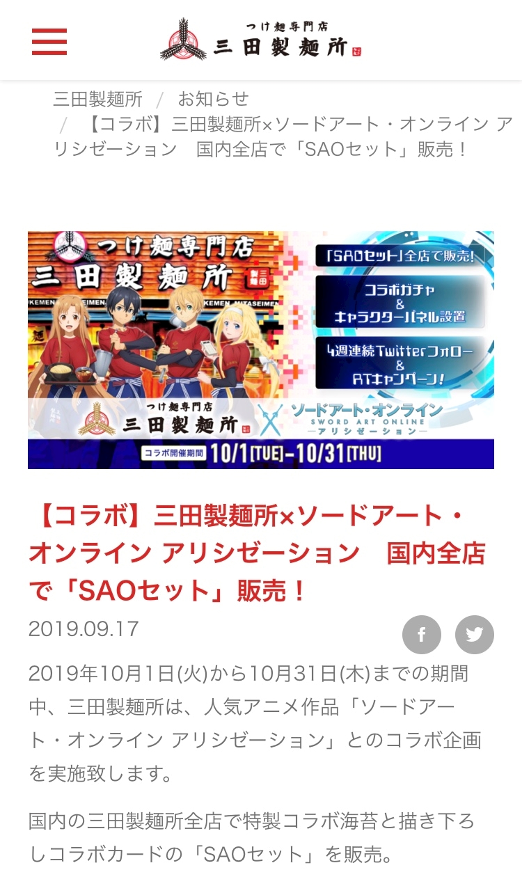 がSAOとコラボだと…(; ・`д・´)ゴクリンコ